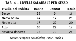 livello di reddito mentre per gli uomini la percentuale è molto minore, il 9%.